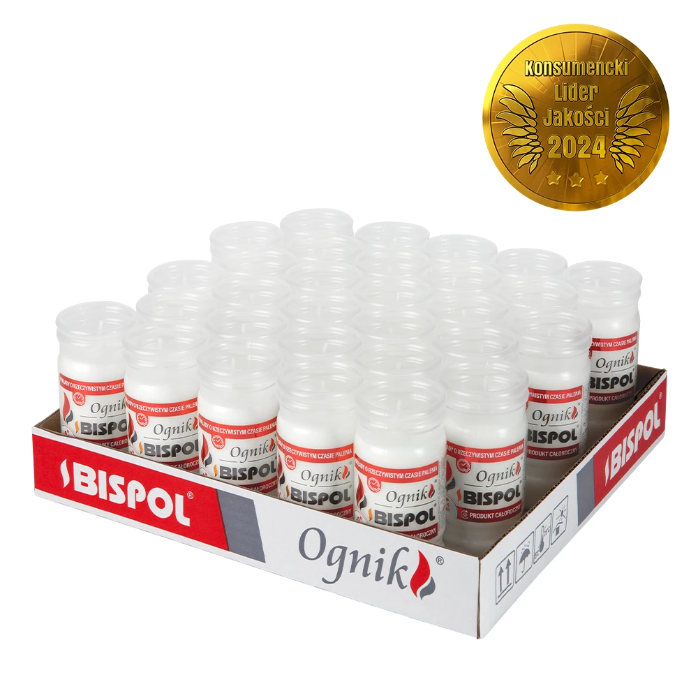 Oferowane przez nas wkłady do zniczy 2 dniowe zalewane Ognik marki Bispol to produkty o doskonałej jakości i wysokiej estetyce wykonania. Wyprodukowane zostały ze sprawdzonych materiałów, co gwarantuje ich trwałość i niezawodność. Dobrze sprawdzają się w różnych warunkach atmosferycznych i w szerokim zakresie temperaturowym, dzięki czemu z powodzeniem można z nich korzystać przez cały rok. Najbardziej ekonomicznym rozwiązaniem jest zakup większej liczby wkładów za jednym razem, dlatego też sprzedajemy je na tackach zbiorczych po 30 sztuk.