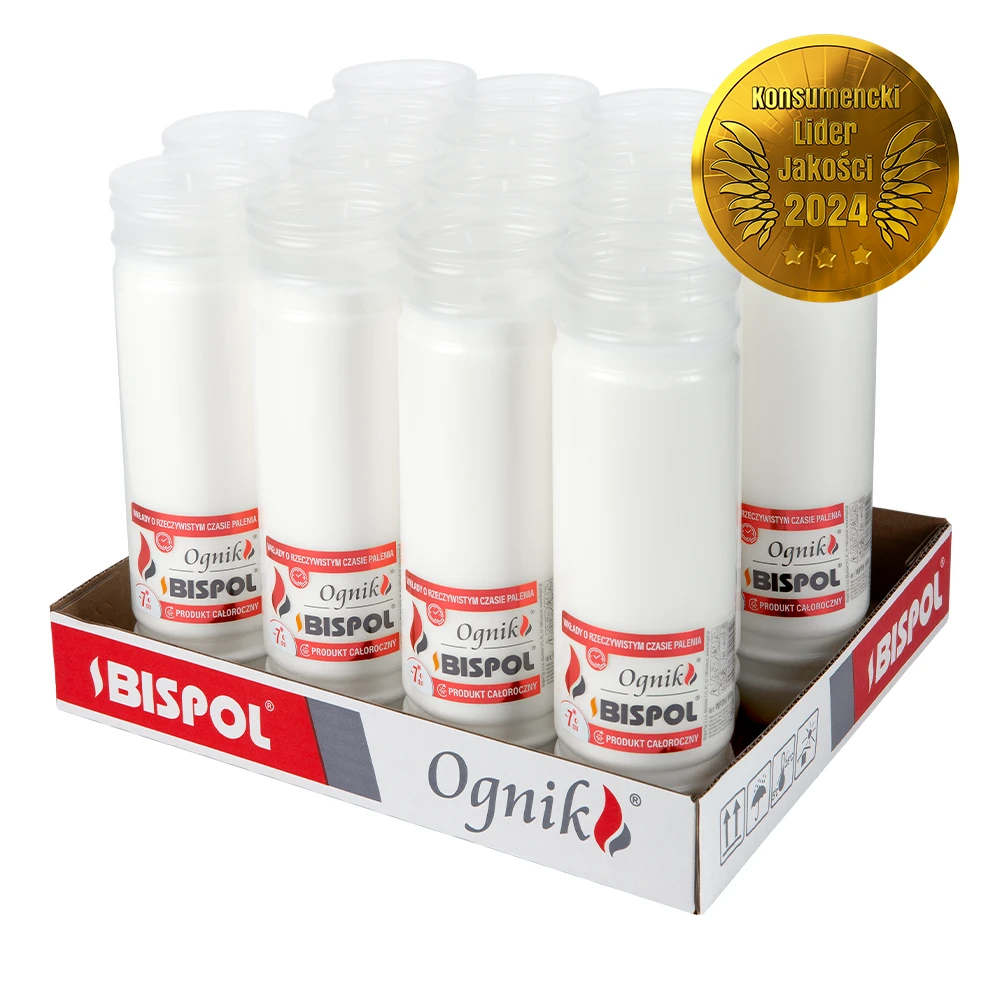 Zalewane wkłady do zniczy Ognik WP7N o czasie palenia do 7 dni, przygotowana z myślą o długotrwałym użytkowaniu niezależnie od pory roku. Każdy wkład posiada średnicę 6,6 cm oraz wysokość 22,5 cm, dzięki czemu pasuje do większości zniczy o wyższych gabarytach. Wkłady wykonano z wysokiej jakości białej masie palnej, która spala się równomiernie. Gwarantuje spokojny, stały płomień. Wkłady do zniczy całorocznych sprawdzą się podczas świąt, rocznic i codziennych odwiedzin na cmentarzu, oferując wygodę bez konieczności częstej wymiany. Oferta dotyczy kompletnej tacy zawierającej 16 sztuk wkładów tygodniowych, co czyni ją opłacalnym wyborem zarówno dla użytkowników indywidualnych, jak i punktów sprzedaży. To propozycja dla osób, które oczekują trwałości, czystości i niezawodnego działania w każdych warunkach.